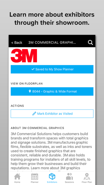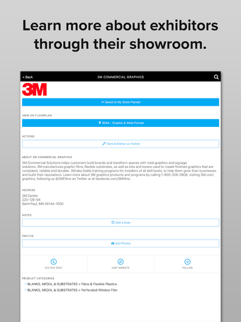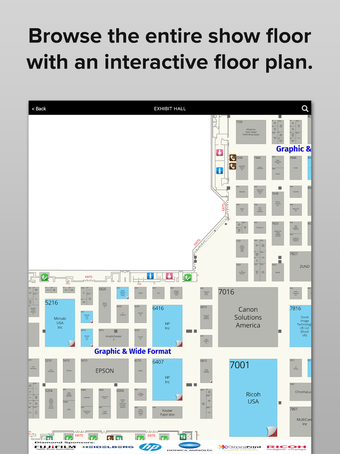 يتيح لك الخريطة التفاعلية للتطبيق تصفح المعارض والمنتجات التي يقدمونها بسهولة. باستخدام تقنية النقطة الزرقاء، يمكنك التنقل بسهولة في المعرض دون أن تضيع. يمكنك أيضًا عرض جدول الفعاليات، بما في ذلك العروض التوضيحية والكلمات الرئيسية والجوائز. بالإضافة إلى ذلك، يمكنك تحديد مواعيد مع المعارضين وإنشاء جدول أعمال شخصي.